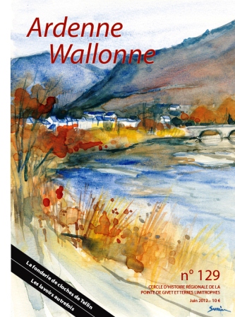 Le numéro d’été de la revue s’ouvre sur un article important de Vincent Duseigne et Vincent Anciaux à propos d’une fonderie de cloches : A Tellin, la famille Causard-Slégers, depuis plus de 150 ans, a fait sortir de sa fonderie plus de 4.000 cloches de plus de 100 kilos ! Après avoir évoqué chacun des membres de la dynastie des Causard et des Slégers qui créèrent et animèrent l’entreprise depuis l’époque de l’Empire, tant en Belgique qu’en France, les auteurs de l’article décrivent bâtiments, technique et savoir-faire. « Le prince d’Orange à Givet en 1555 » est la suite de la recherche de Christian Delire (AW. N°128) sur la correspondance du prince avec la sœur de Charles-Quint lorsqu’il était au camp de Givet. Avant de sourire à l’article retrouvé de F.Canu, « D’Hargnies à Fromelennes, voyage au pays des Rémois » (sic), on abordera plus sérieusement le descriptif de la chaîne de barrage sur la Meuse, décrite et reproduite par Alain Sartelet, dont le but était de bloquer en cas d’attaque de Charlemont tout renfort arrivé par voie navigable. Enfin, Domique Charret- Henquin présente la conférence qu’elle donna lors de la dernière assemblée générale de l’association « Les lavoirs d’autrefois ».
