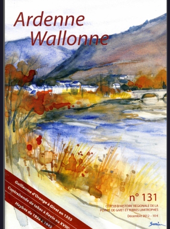 D’autres articles font suite à des études entamées précédemment, tant sur la commune de Haybes (Haybes pendant la seconde guerre mondiale, par G. Lépine), que sur le Prince d’Orange à Givet en 1555 (Ch. Delire). On notera également une belle poésie de Marie-Louise Dromart sur Haybes, un article du docteur Bourgeois sur l’impôt sur la bière à Fumay sous l’Ancien Régime, et un autre de François Lorent sur la contrebande de tabac à Revin au XVIII° siècle. Parmi les notes, une note de Jean-F.Pinard sur l’épidémie de choléra à Givet en 1849. Le tout entourant une belle vue de Vireux-Wallerand mirant son château dans la Meuse par un beau soleil d’été sous le regard du photographe (V. Anciaux) et des colonnes de vapeur jaillissant des cheminées de Chooz...