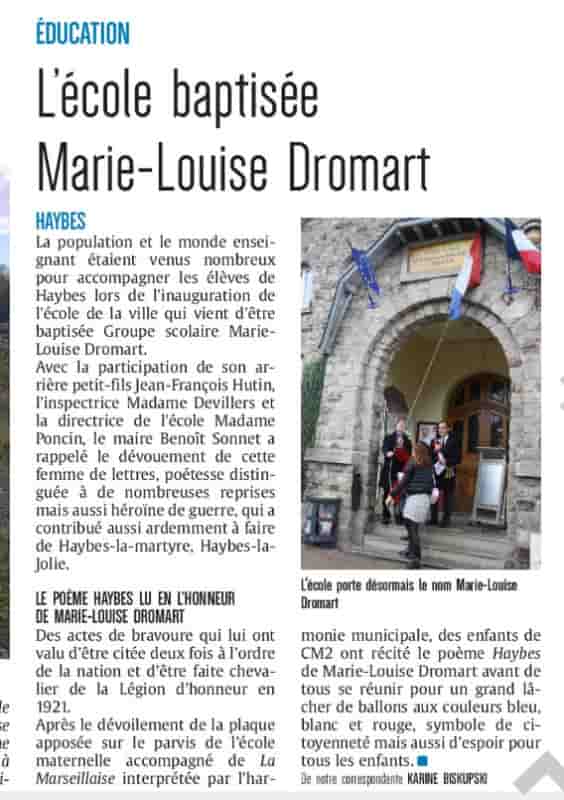 Le 11 novembre 2018, le groupe scolaire de Haybes prenait à son tour le nom de « Groupe scolaire Marie-Louise Dromart ».