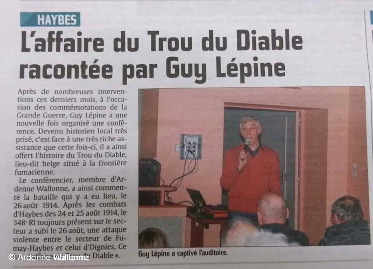 Après un rappel des combats de Haybes, des 24 et 25 août 1914, et des mouvements de troupes françaises, à savoir le 348ème RI et le 58ème BCP, ce furent ensuite les événements de la journée du 26 août, marquée par le tragique combat du Trou du Diable qui furent exposés.