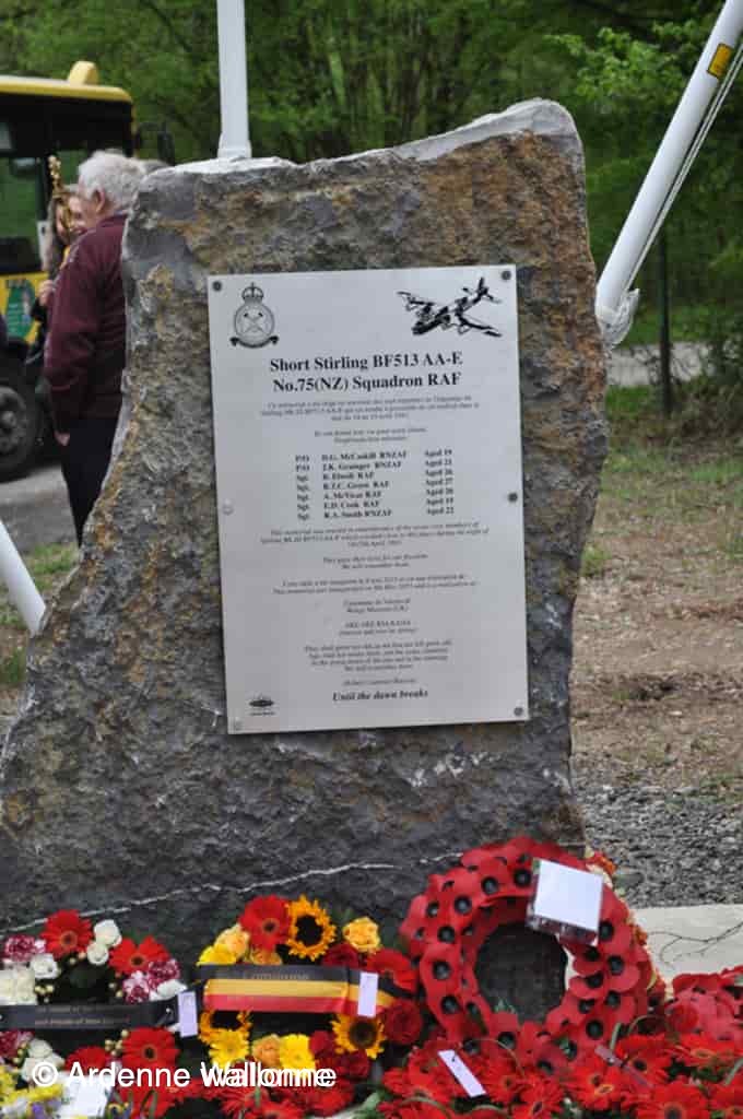 Le 8 mai 2015, une sobre mais émouvante cérémonie s’est déroulée en pleine forêt, à l’endroit même où en 1943, le Short Stirling BF513 a été abattu, à la mémoire de ces sept soldats alliés. Une stèle matérialise désormais ce lieu, devenu maintenant lieu de souvenir historique. Un beau parcours mémoriel à découvrir !